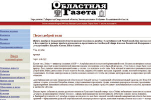 "Xoşməramlı səfir". Sverdlovsk vilayətinin mərkəzi mətbu orqanı olan "Oblastnaya qazeta"da dərc edilmiş məqalə belə adlanır. Məqalədə Heydər Əliyev Fondunun RF-dəki nümayəndəliyinin rəhbəri Leyla Əliyevanın bu il dekabrın 2-3-də Yekaterinburqa səfərindən......